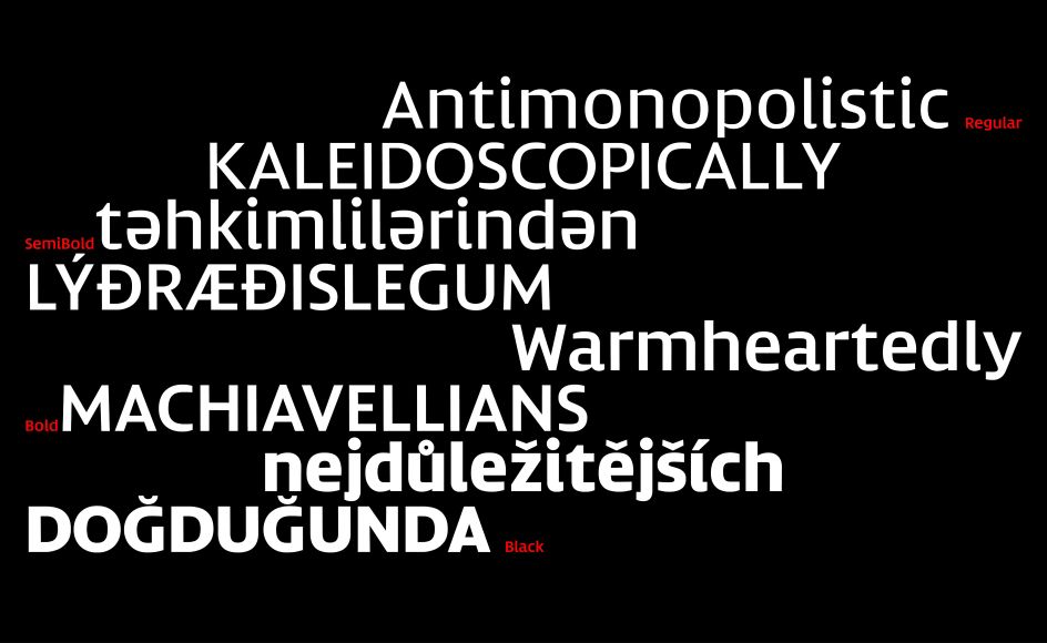 If you’re looking for a geometric sans serif that can handle everything from thin line titles to bold titles, and has a true architectural conviction, Area deserves your attention. A variable superfamily of 176 styles covering compressed to expanded widths and with standard and ink trap variants, it is built on a strict modular structure that softens into something more novel in use, making it very comfortable when running text and display work.