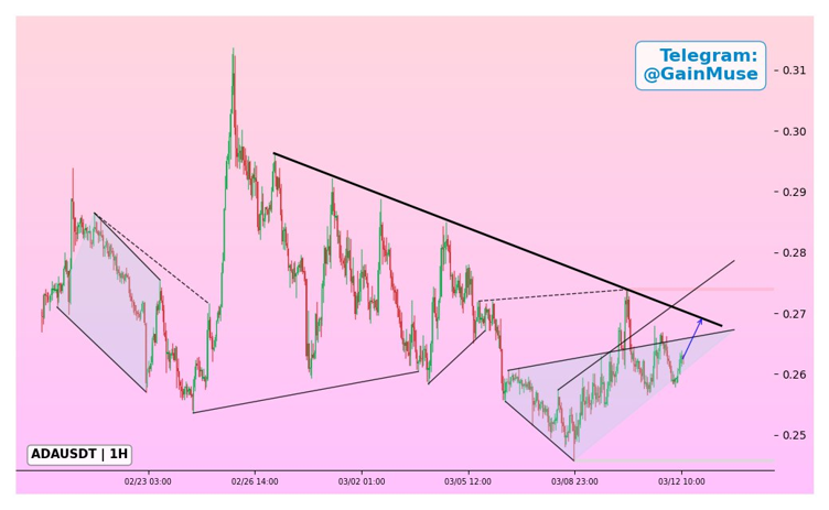 According to market analyst GainMuse, Cardano (ADA) is squeezing below the long-standing bearish resistance near $0.27, forming a bullish structure that often occurs before a breakout.