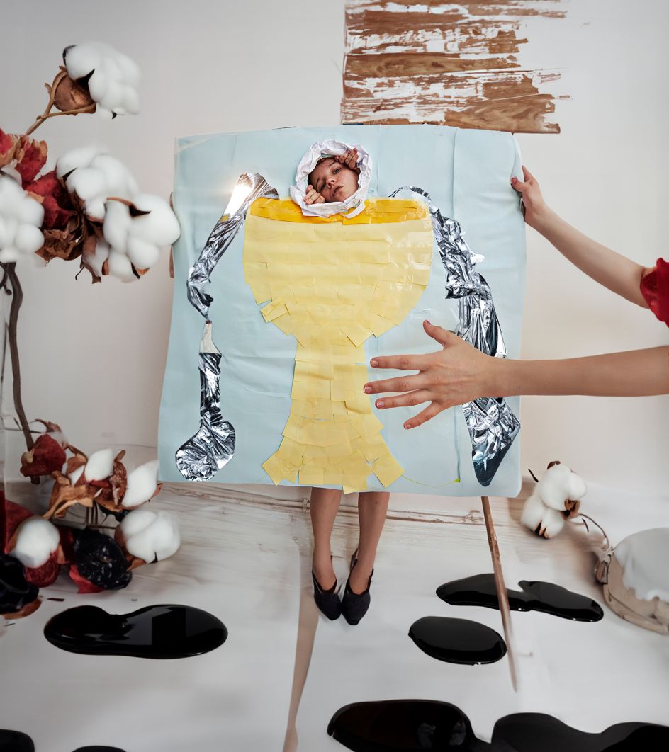 Maya Golyshkina is a self-taught artist whose greatest inspiration comes from the things around her. More specifically, those household items—bags, cardboard boxes, anything really—that she can cut, tear, glue, and turn into a fantastic creation. In her hands, the ordinary becomes dramatic. “I mostly use everything I see around me, both at home and outside,” she says. “Everything I come across inspires me and I always come up with something and create magic out of it.”