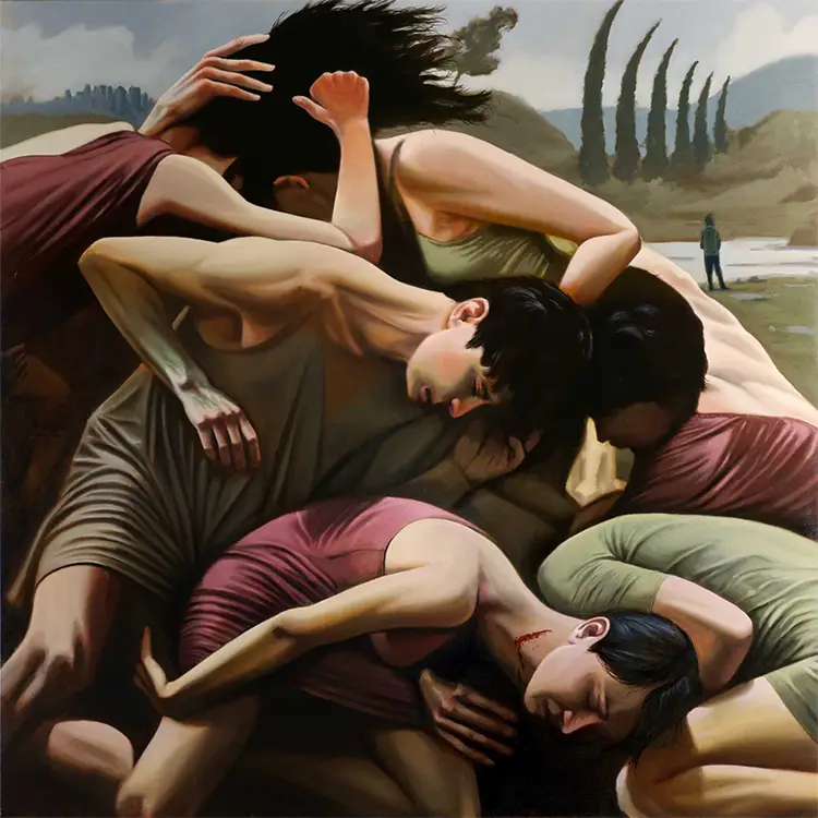 During his first year of painting full-time, his canvases bear the marks of exhaustion and psychological stress. He sought to depict the fatigue that sleep cannot repair, as well as the mental fog and frayed nerves that accompany ennui. Over time, however, his thematic focus broadened. While isolation and exhaustion remain, they evolve into broader inquiries into identity, vulnerability, and social dynamics. He became increasingly interested in the fragile balance between strength and sensitivity and the experience of being human among other human beings. The crisis that once threatened to silence him instead became the catalyst, transforming a personal breakdown into an ongoing artistic investigation.
