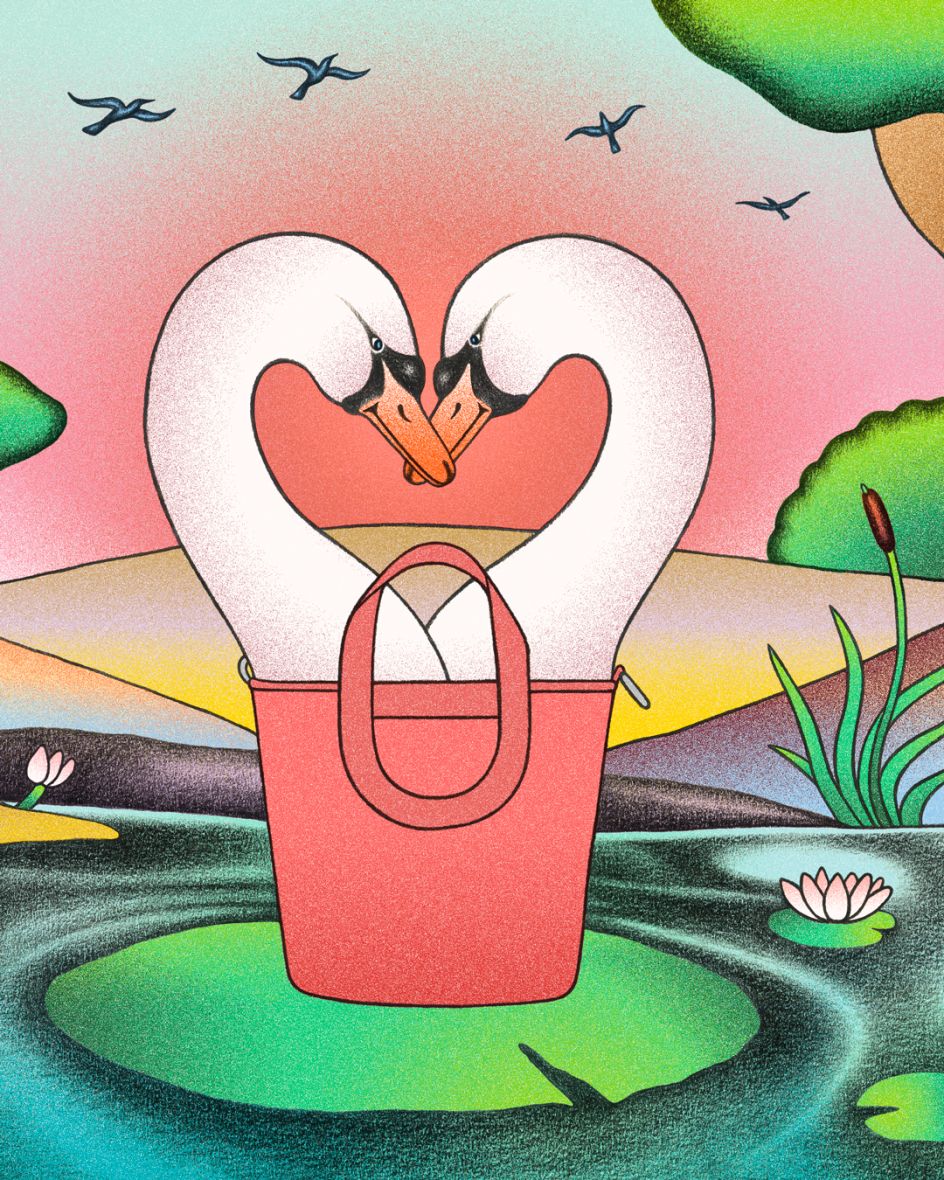 Linda Merad, a French illustrator living in Paris, is one such artist. In 2025, she was asked to create illustrations for the brand’s Instagram account, resulting in a series of colourful, textured pieces filled with gorgeous homages to nature and playful characters – shoe kisses, human mushrooms and lithographic experiments. Hermès loved it so much that art director Rachel Cazadamont asked for more and wanted Linda to animate it using her signature lithographic aesthetic.