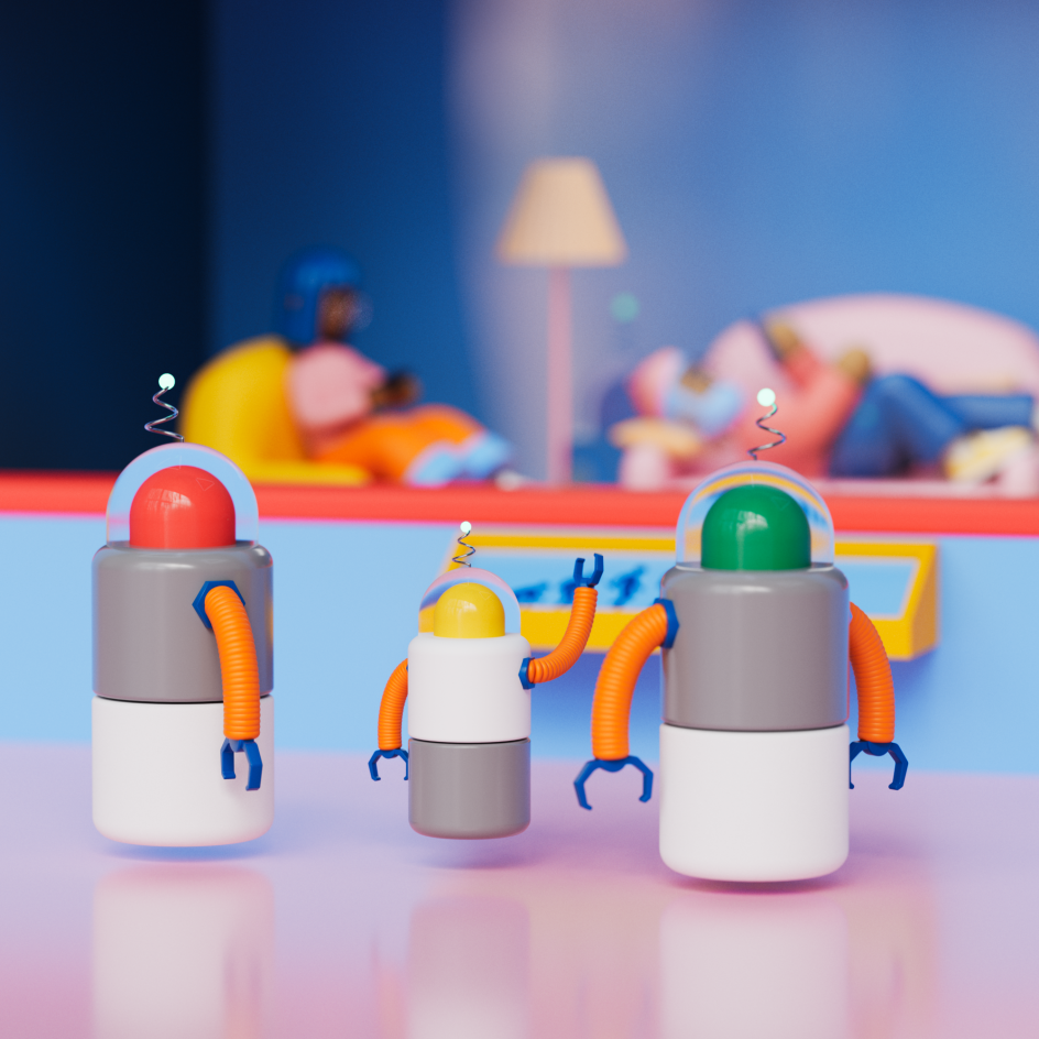 “I’ve been doing 3D motion design for many years, so I know how complex and time-consuming 3D can be, and I wanted to get away from that,” he said. “Although the style has evolved from the early stages, I feel the essence is still there and the characters have a very artificial feel. You can also make the characters become anyone by adding different elements such as hair, hats, glasses, etc., just like buying add-on packs for the toys.”